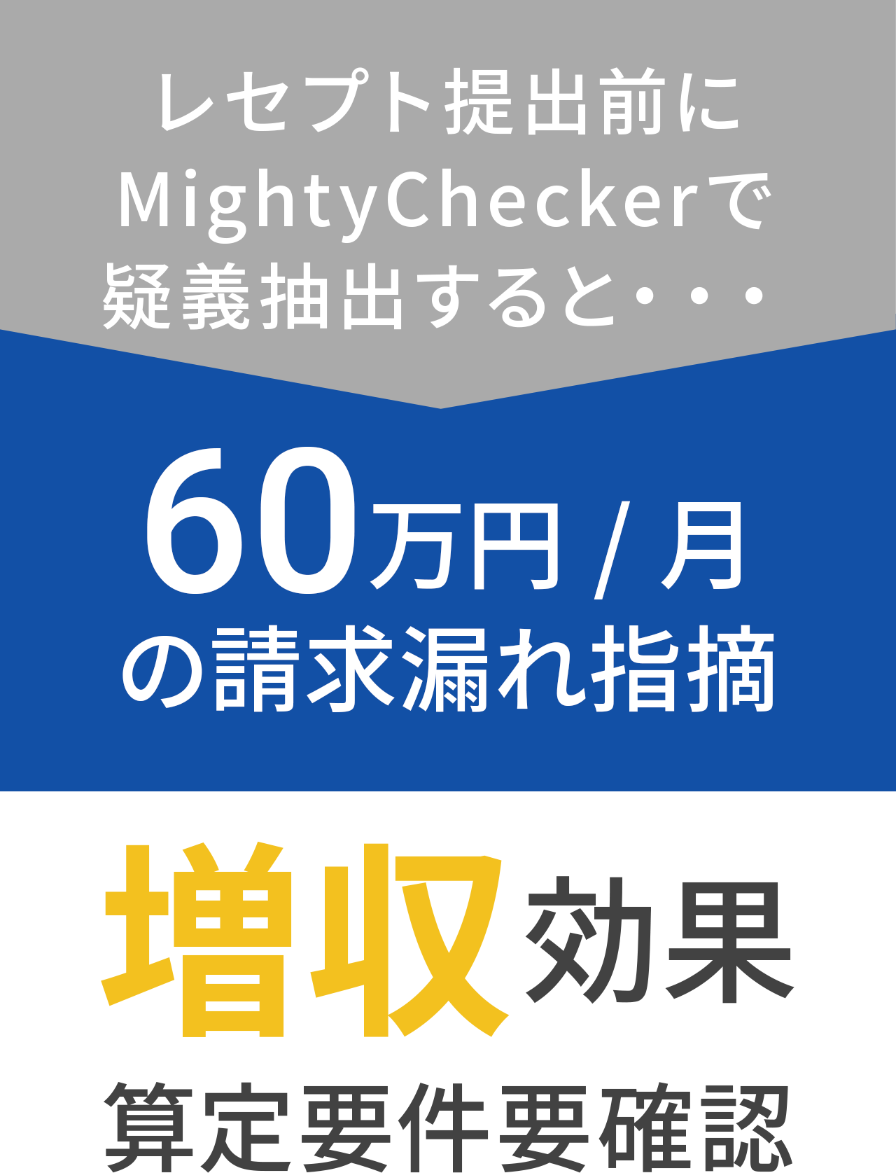 間違いを見つける点検から、算定漏れを発見する「攻めの点検」は精度の高いシステムの得意分野です。